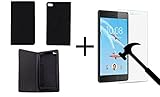 KANICT 7" inch Tablet Leather Front & Back Flip Case Cover + Tempered Glass Screen Protector for Lenovo Tab7 7304F -Black
