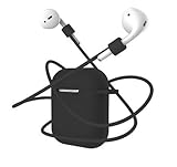 #6: ikazen Silicone Shock Proof Protective Case Sleeve Skin Cover with Key Chain Clasp & Anti Lost Strap for Apple AirPods Wireless Headphone Charging Box (Black)